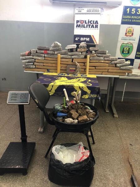 A Polícia Militar apreendeu 53 kg de substância análoga a maconha, na manhã deste domingo (09.01), no bairro Residencial Paiaguás, em Várzea Grande. Os entorpecentes foram localizados dentro de uma residência denunciada por ser um local de depósito de drogas.