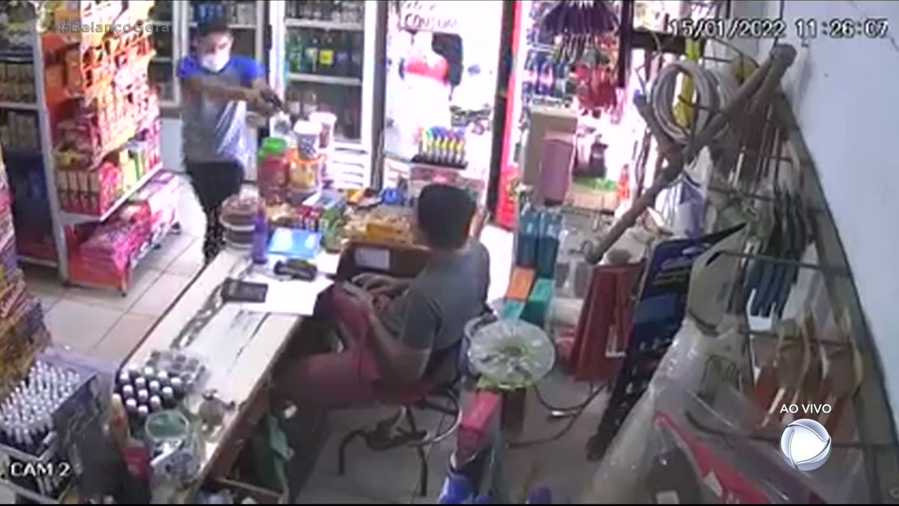 Assaltante armado invade mercado, mas vítima reage e pega a arma dele
