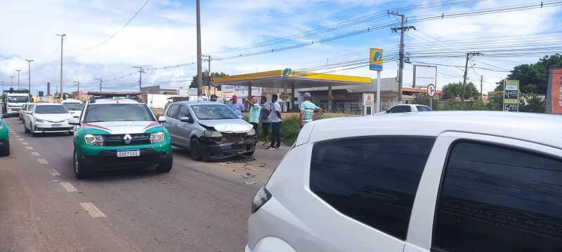 Um acidente entre três veículos deixou o trânsito lento, e motoristas exaltados, na avenida Júlio Campos, sentido Trevo do Lagarto, em Várzea Grande, nesta terça-feira (01.02).