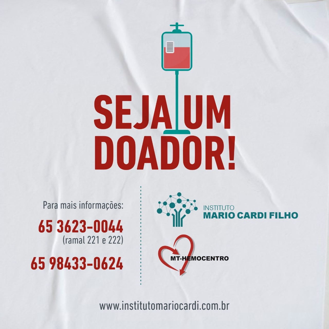 O Instituto Mário Cardi Filho apoia a campanha do MT Hemocentro para Doação de Sangue e cadastro para Doação de Medula Óssea. Através das redes sociais, divulga informações importantes a exemplo do link para doação e cadastro (http://mthemocentro.saude.mt.gov.br).