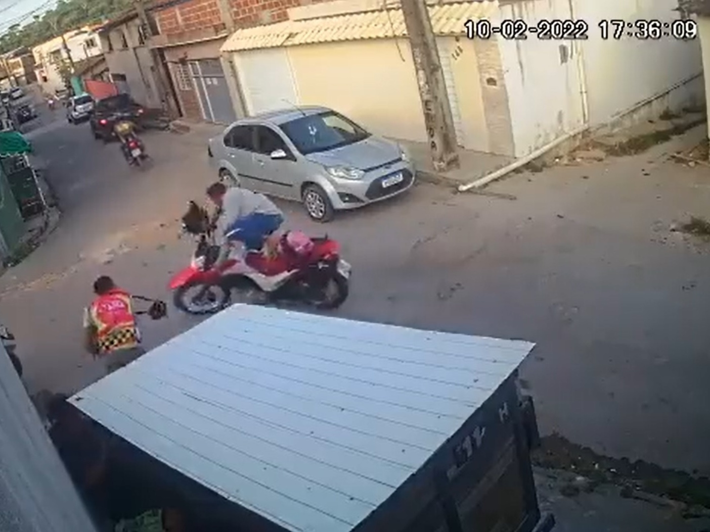 Câmeras de segurança de um estabelecimento de Santo Aleixo, em Jaboatão dos Guararapes (PE) mostraram o momento no qual um mototaxista arremessa um capacete contra um ladrão para evitar o roubo da moto de um colega na tarde de ontem. Nas imagens, é possível ver o suspeito em fuga após desistir de roubar o objeto. O caso não foi registrado na delegacia da cidade.
